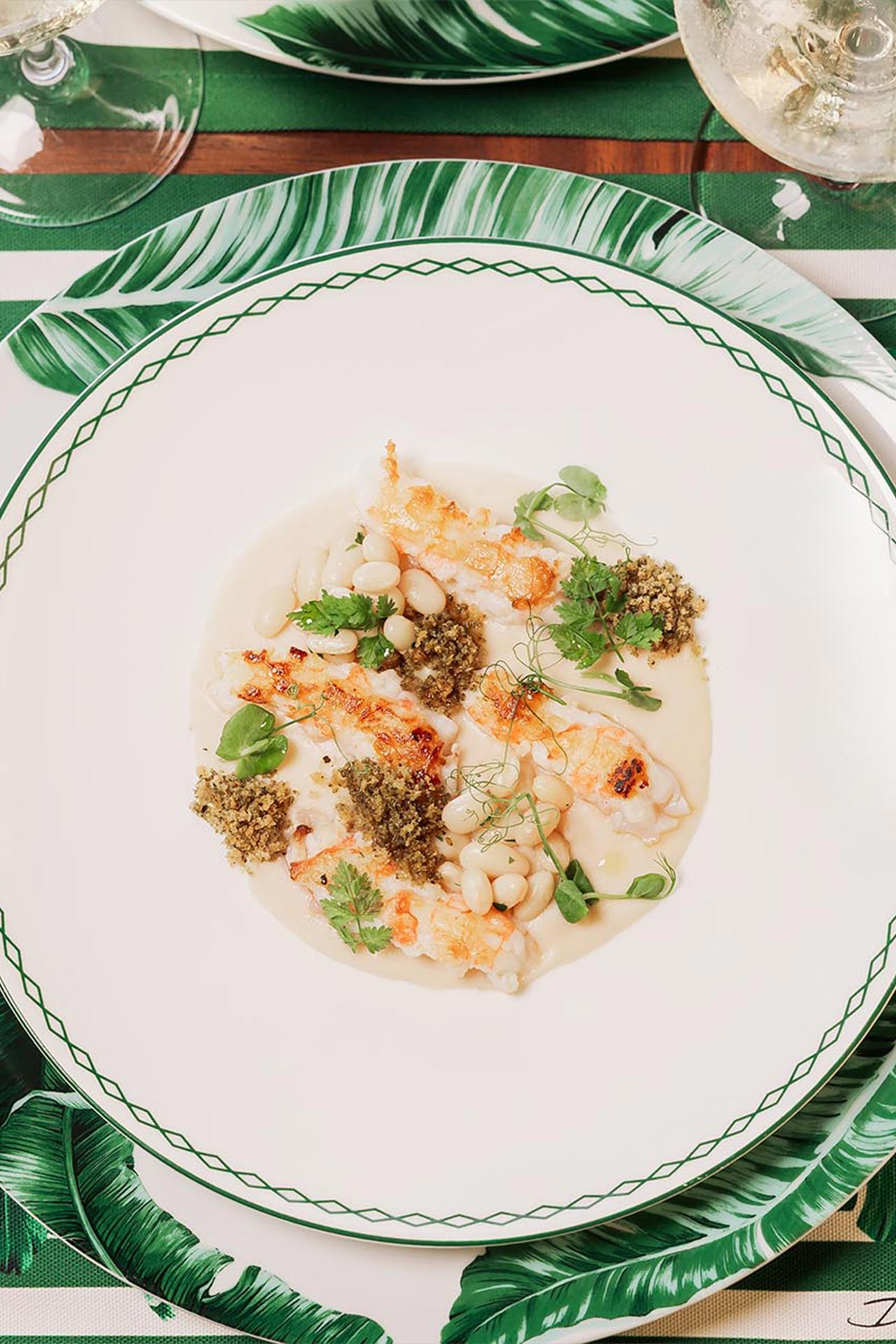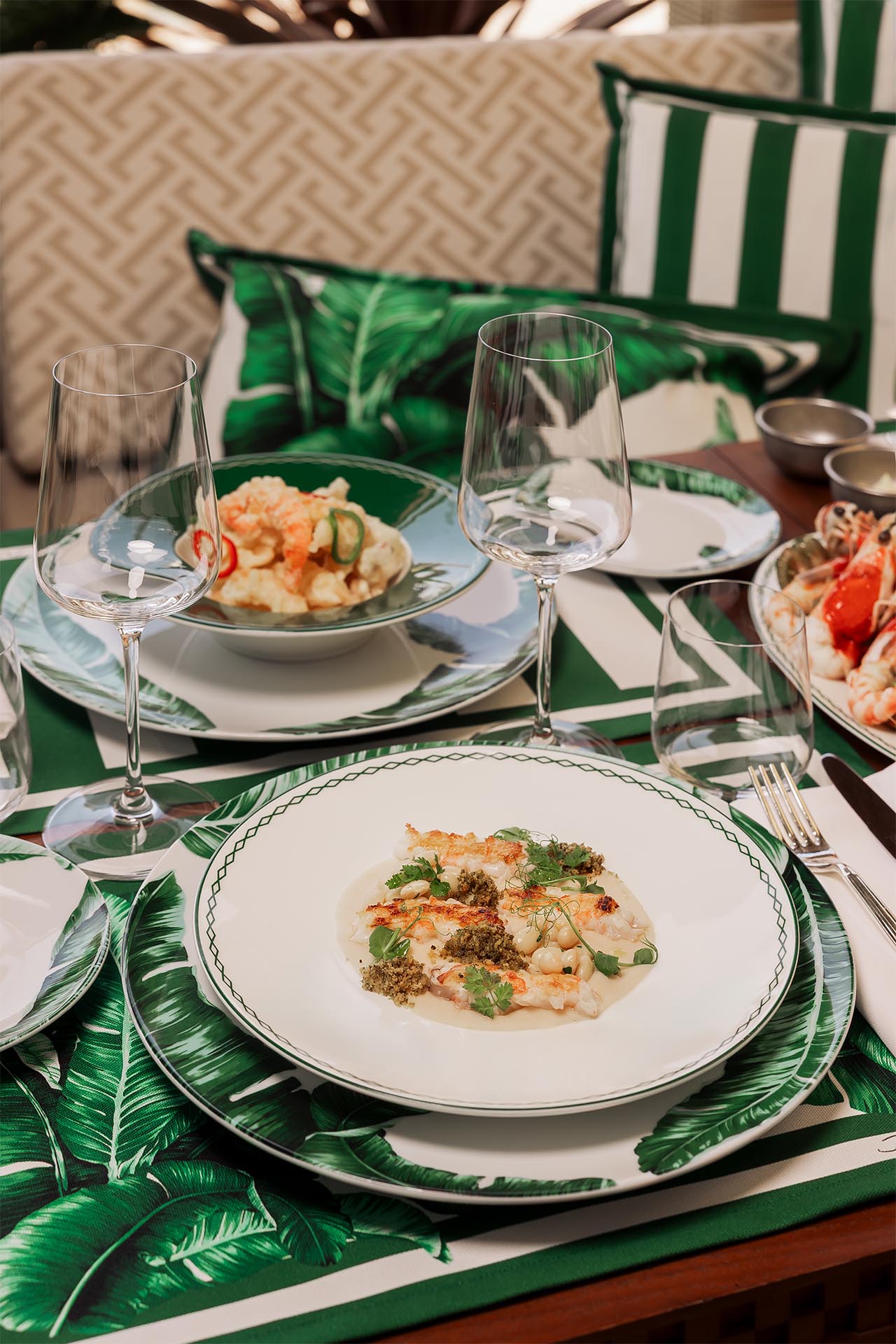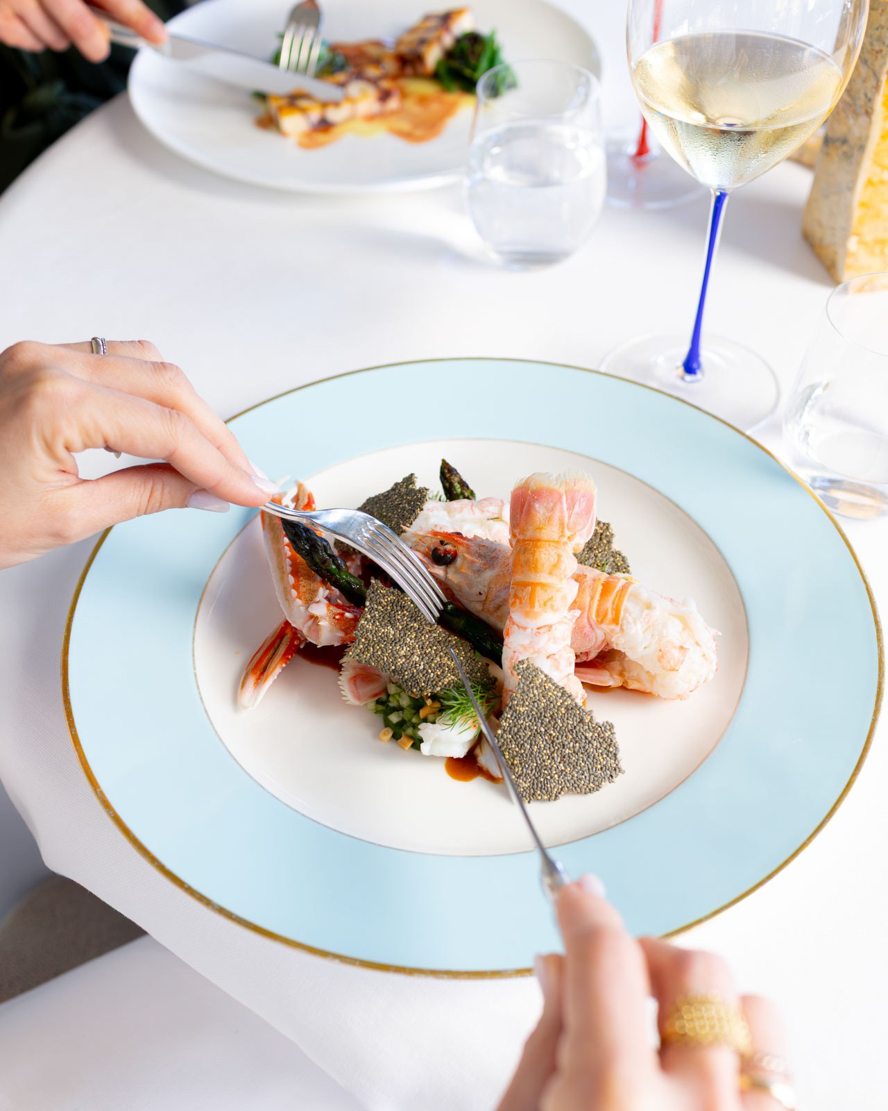 Grilled sole, Grilled langoustine, Extra potato chips. -