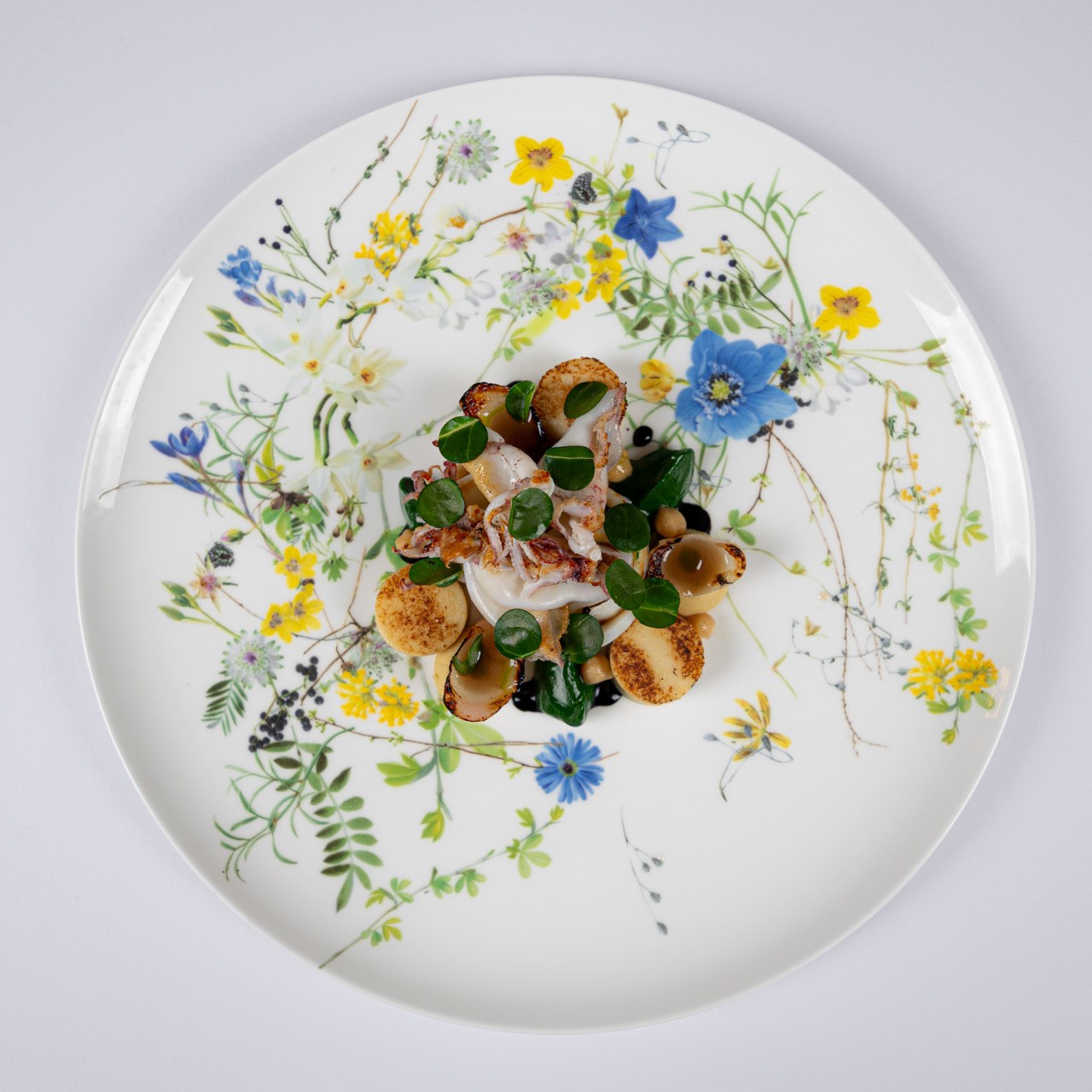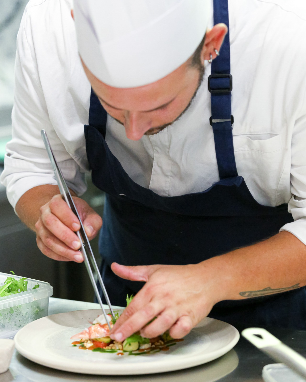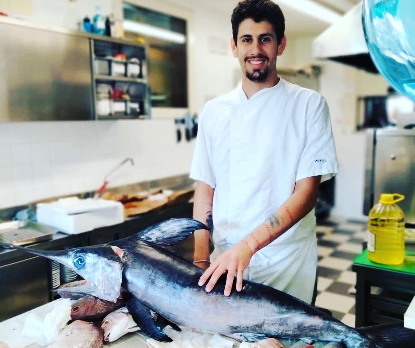Grilled sole, Grilled langoustine, Extra potato chips. -