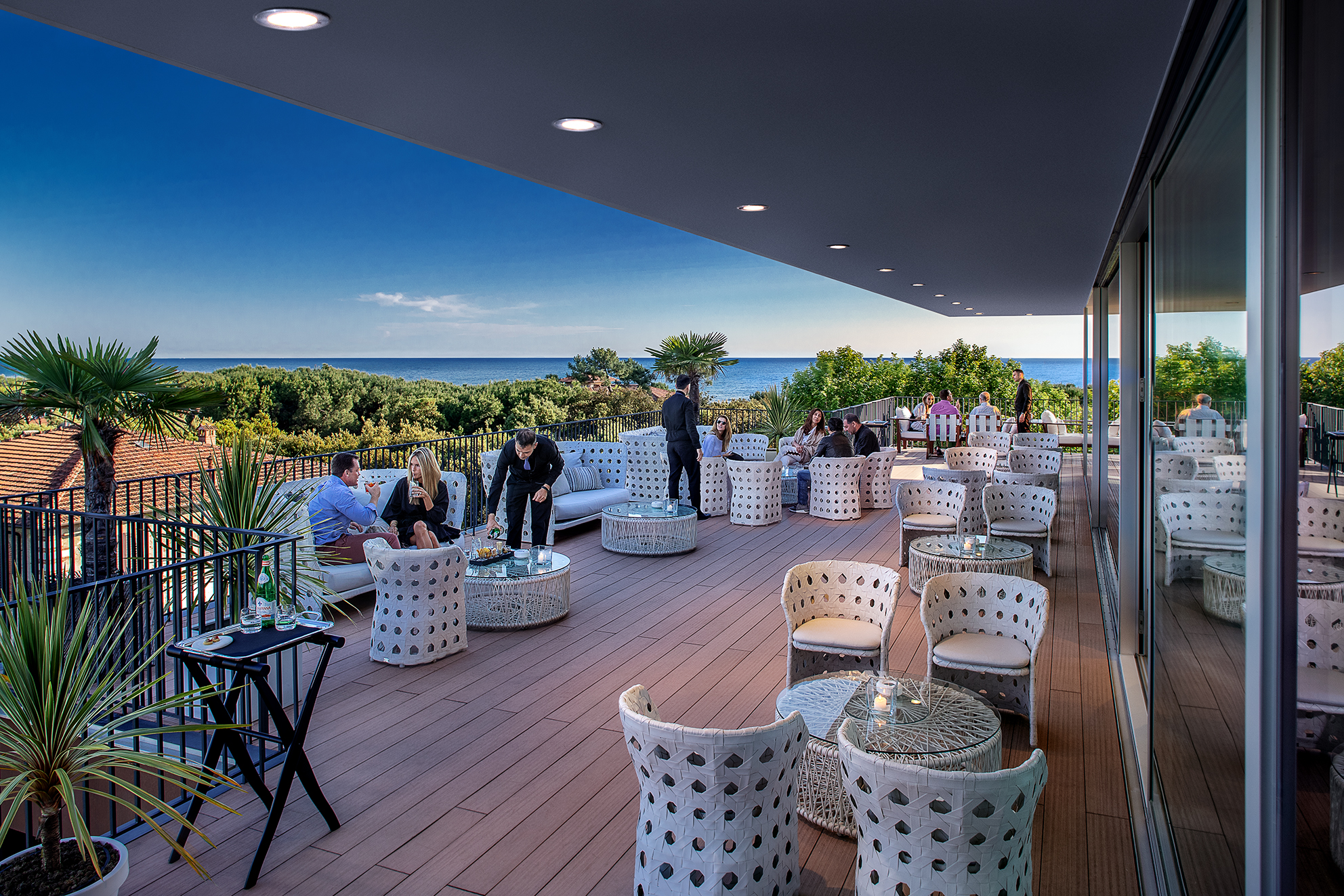 The 67 Sky Lounge is located on the rooftop of the Principe Hotel, and has the best view of Forte dei Marmi. Perfect for watching the sunset.