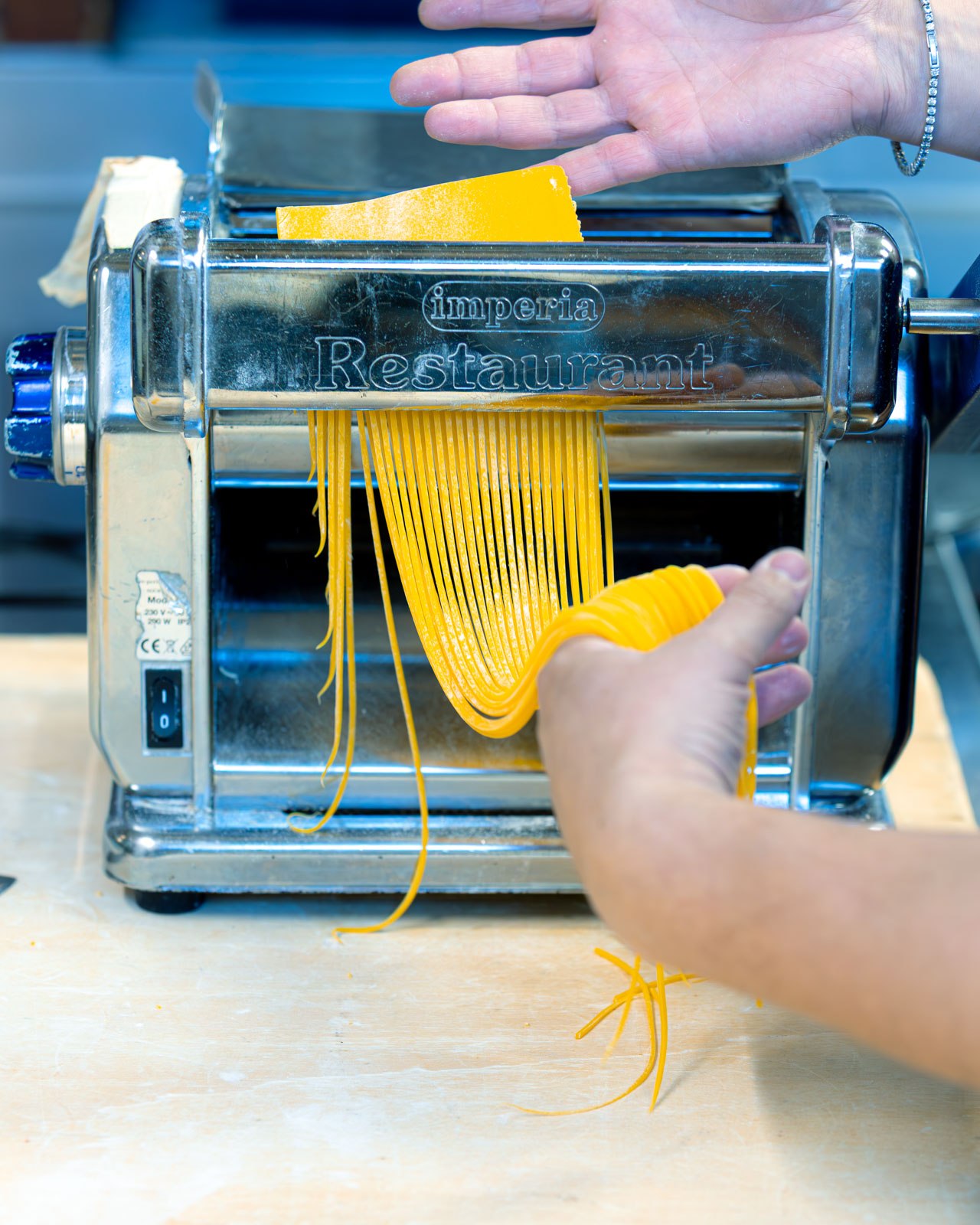 Penne Maitรณ, Grilled sole, Battuta with chilli oil and crispy potatoes, Langoustine risotto, Four cheese pizza, Steak pizza. -