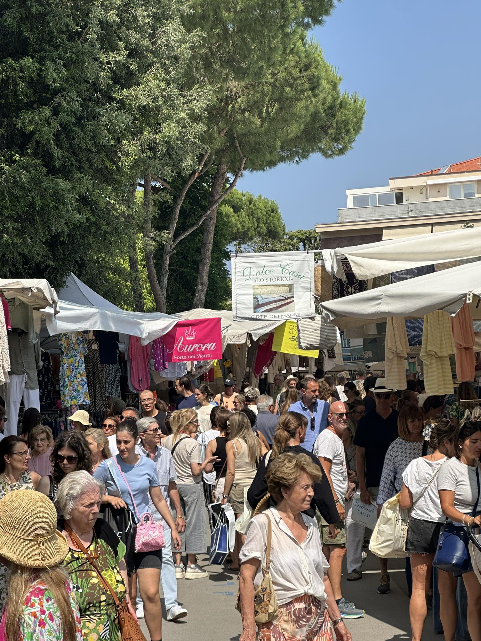 Head to Piazza Guglielmo Marconi on Wednesday and Sunday morning to see and shop at Forte dei Marmiโs famous market.ย