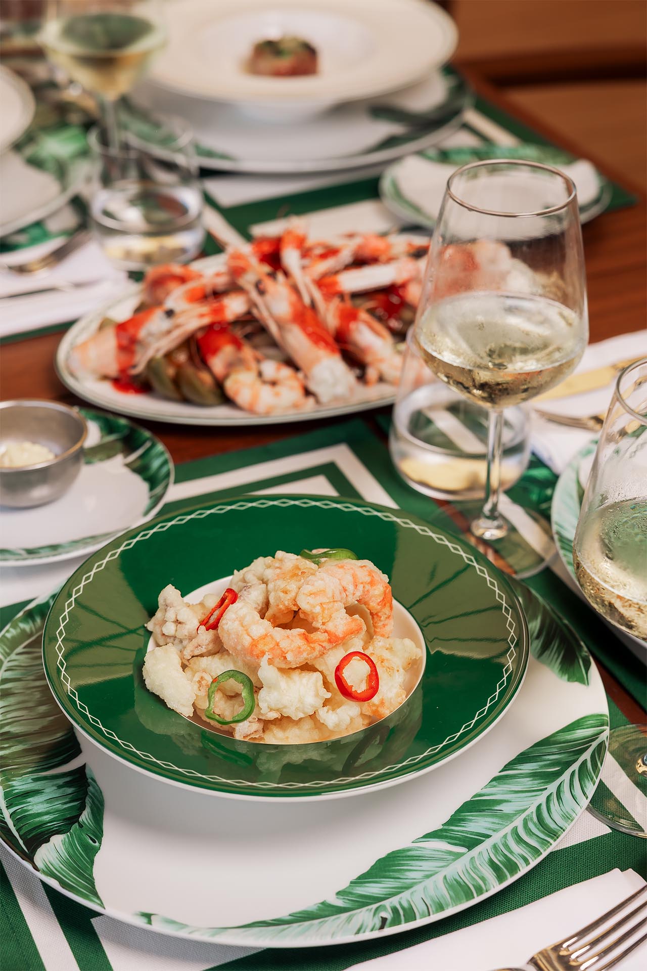 Catch of the day, Baked scampi, Lobster in spicy crust. -